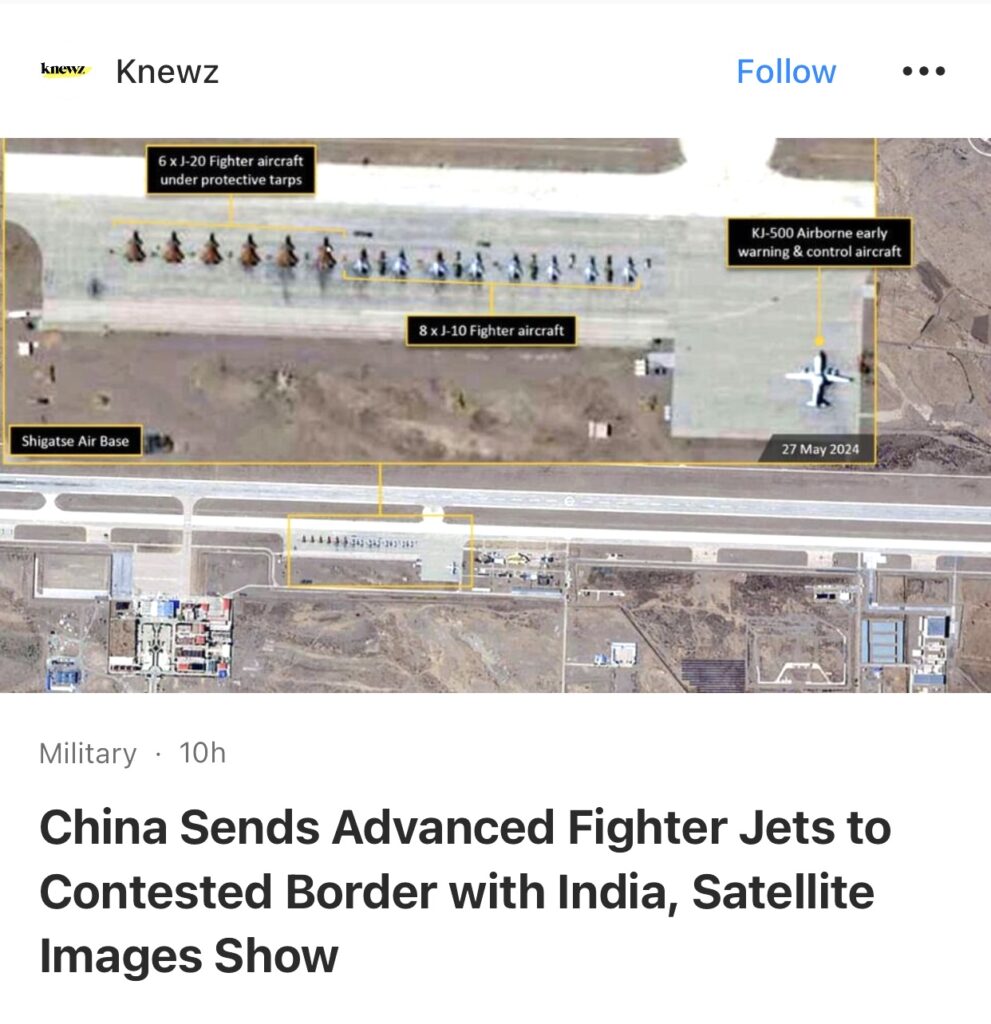 3。据Knewz报道,卫星图像显示,中国向与印度有争议的边境派遣了先进战斗机。