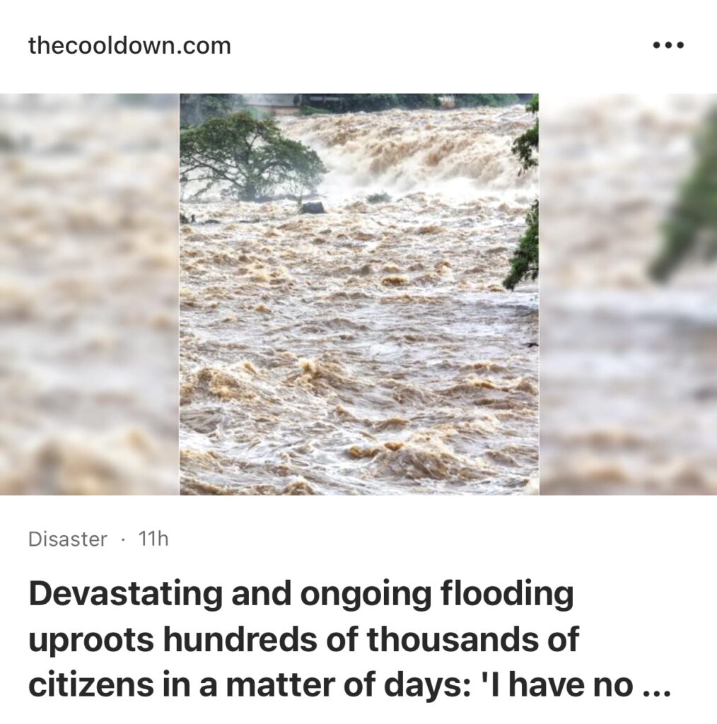 6。据Thecooldown 报道,巴西南部的洪水扰乱了人们的日常生活,几天之内街道就变成了河流,数十万居民流离失所。
