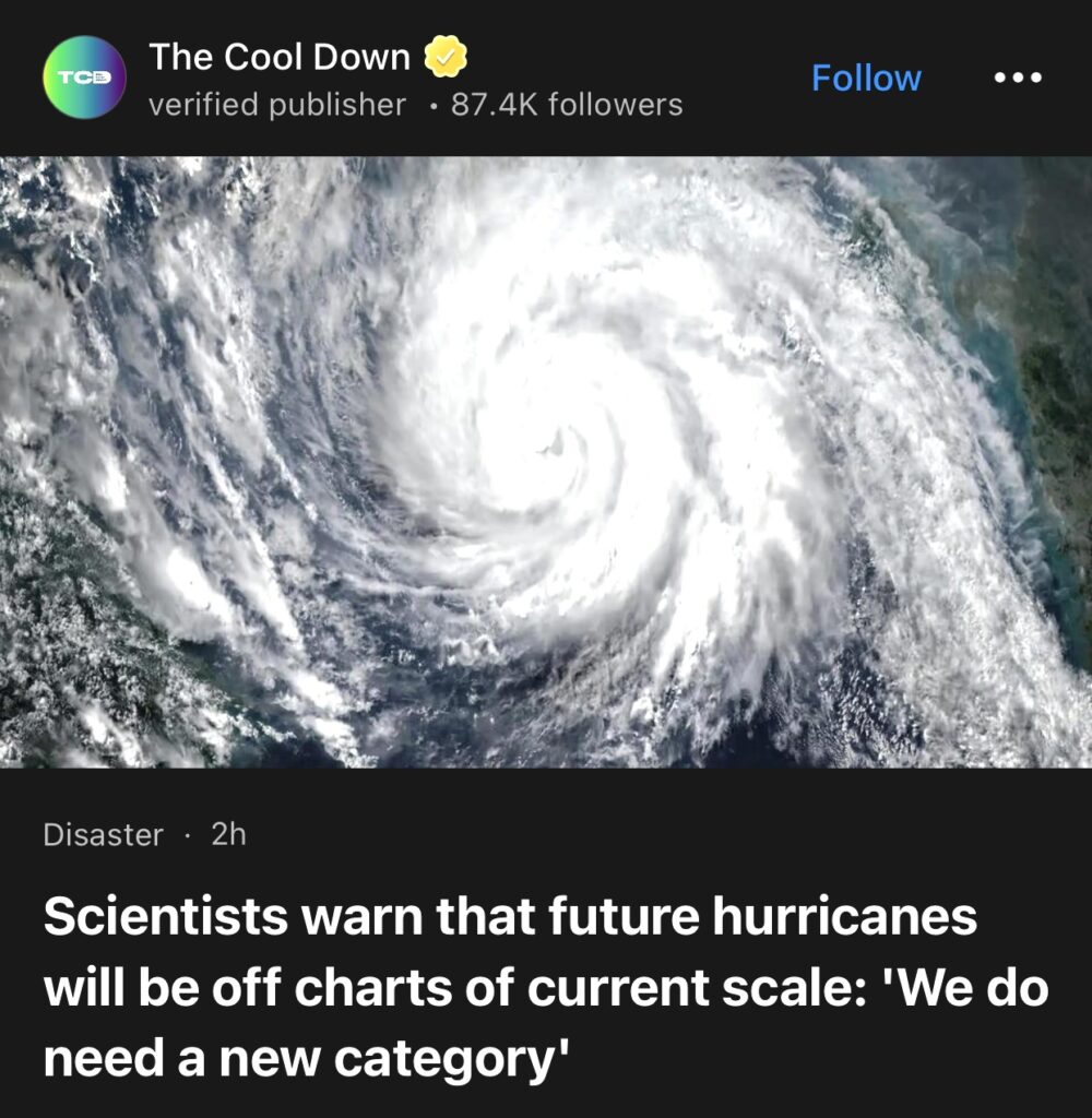 4。据The Cool Down报道,科学家警告称,未来的飓风将超出目前的规模:“我们确实需要一个新的类别”。