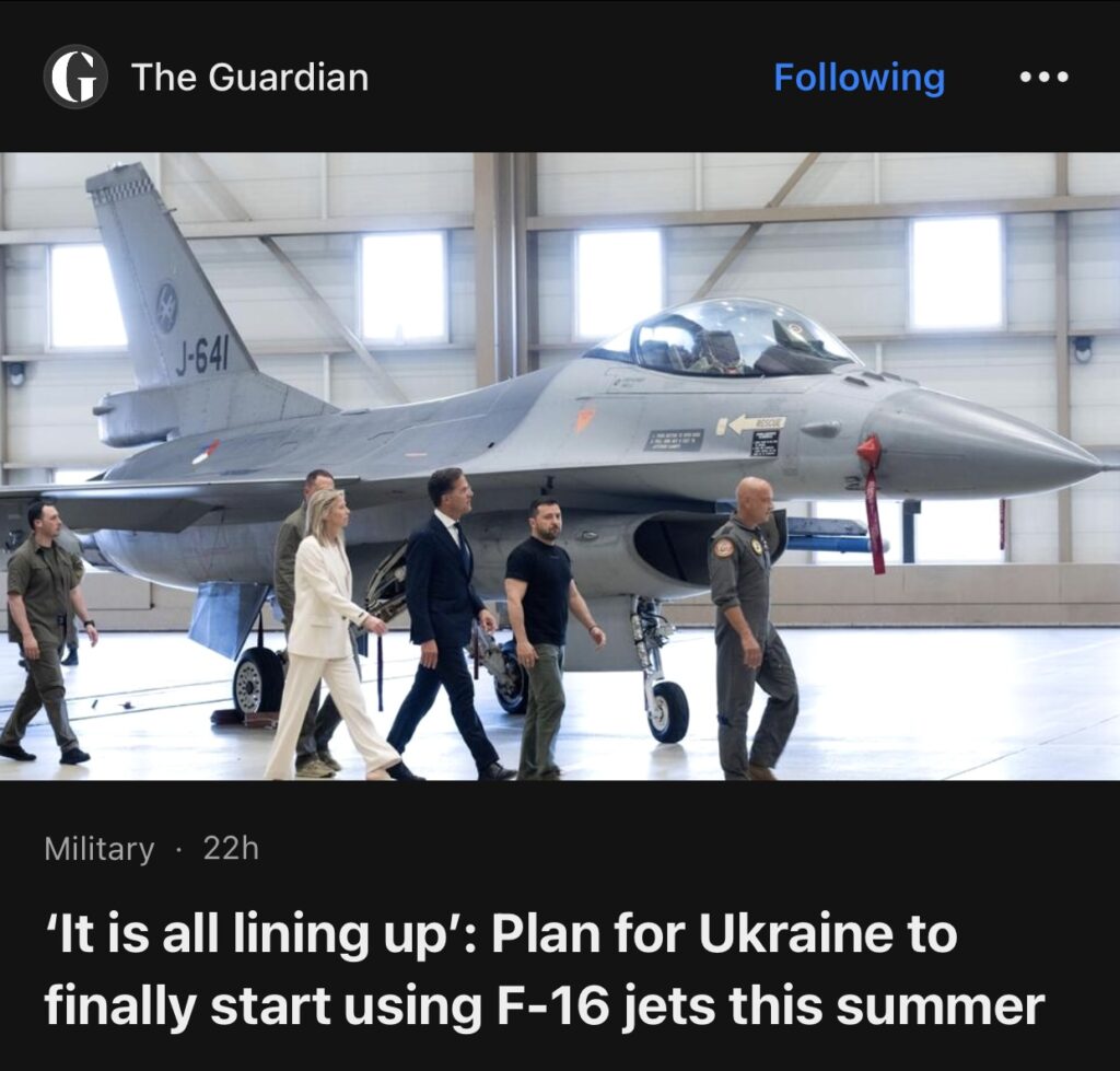 8。据The Guardian报道,一切准备就绪,乌克兰计划今年夏天最终开始使用 F-16 战斗机。