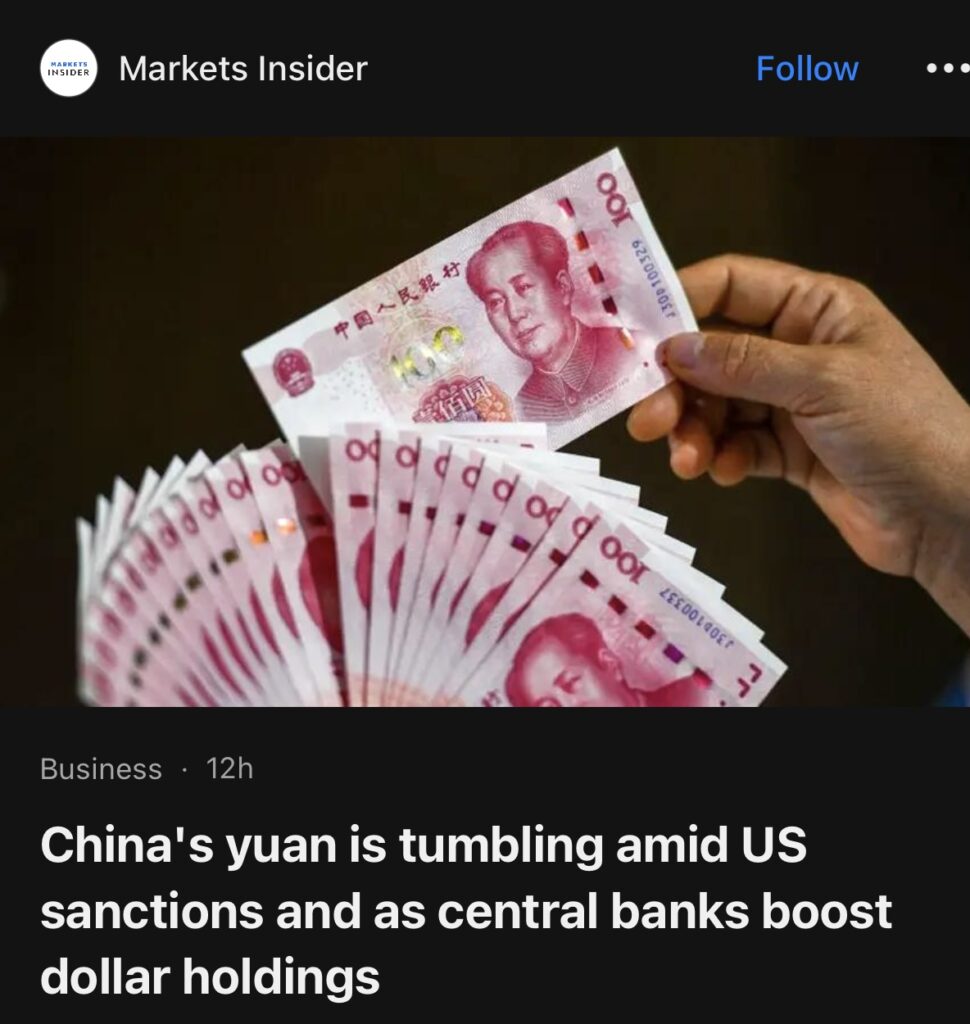 4。据Markets Insider报道,由于人民币持有者关注美国制裁的风险,人民币正处于急剧下跌之中。周三,人民币兑俄罗斯卢布汇率连续第五天下跌,跌至11.51卢布。这是人民币大约一年来最便宜的价格。