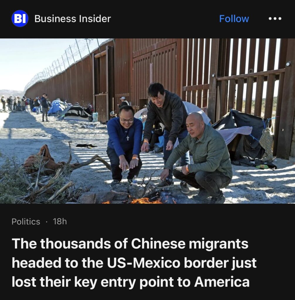 12。据Business Insider报道,去年,数千名中国移民飞往厄瓜多尔,希望从那儿进入美国。但在移民激增后,厄瓜多尔现在正在削减对中国公民长达数年的免签证。2023年在美国边境被拘留的中国人数量比2022年激增至10倍。