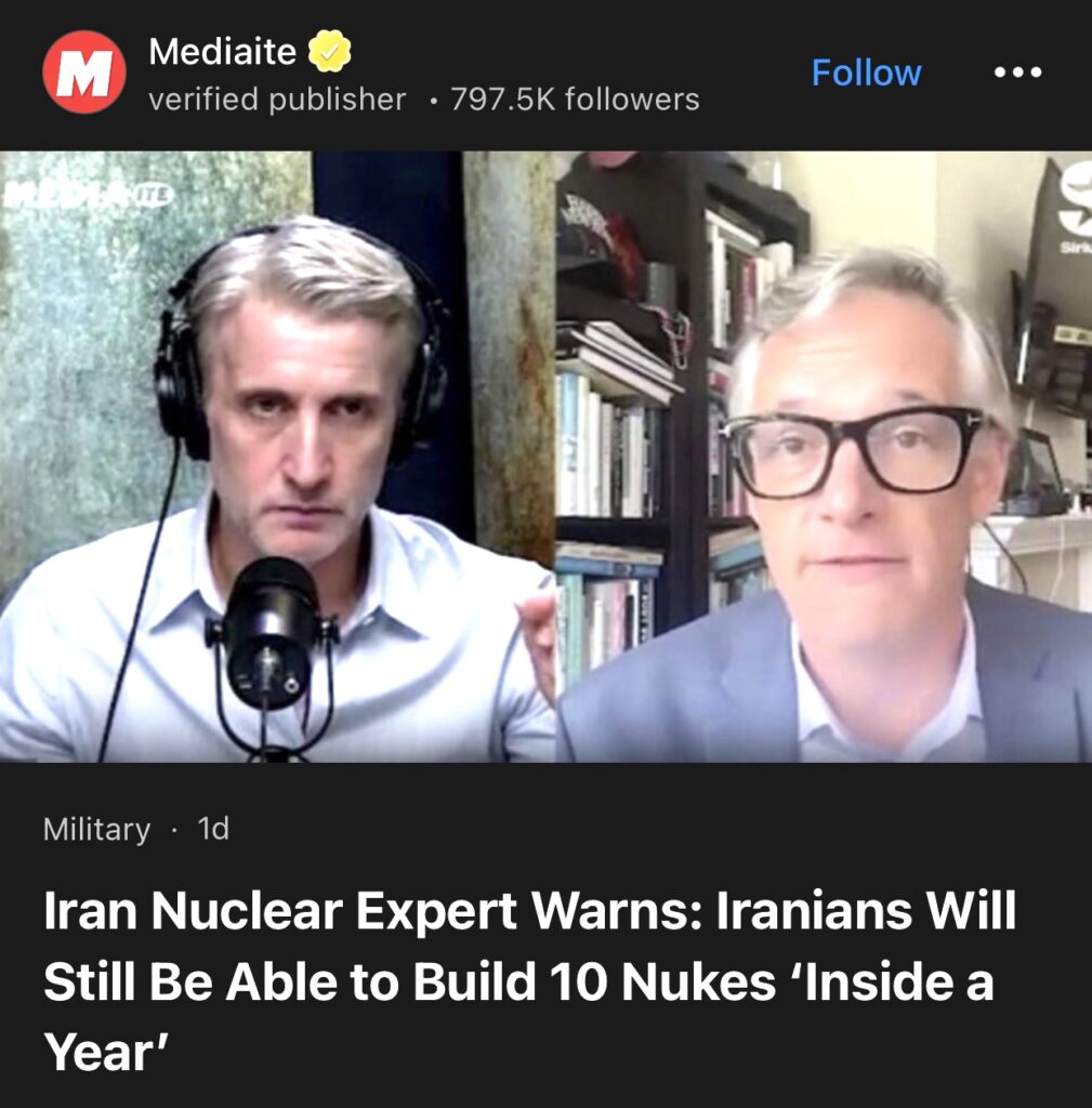 6。据Mediaite报道,伊朗核专家警告:伊朗仍能在“​​一年内”制造10枚核弹。