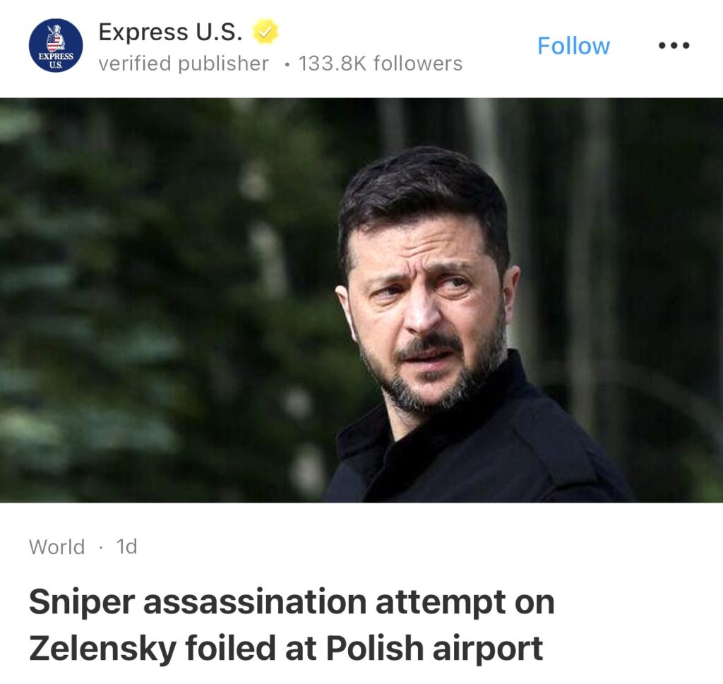 15。据Express U.S.报道,乌克兰安全局局长瓦西里·柳克称,针对乌克兰总统泽连斯基的暗杀行动在波兰热舒夫机场被挫败。