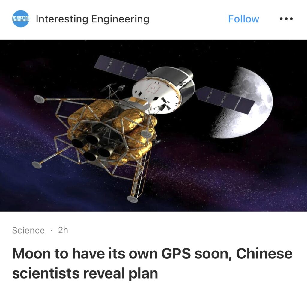 15。据Interesting Engineering报道,中国科学家透露月球即将拥有自己的GPS。中国科学家正计划开发绕月导航系统,以支持北京的登月计划。他们计划向月球发射十多颗卫星,以获得准确的导航数据。