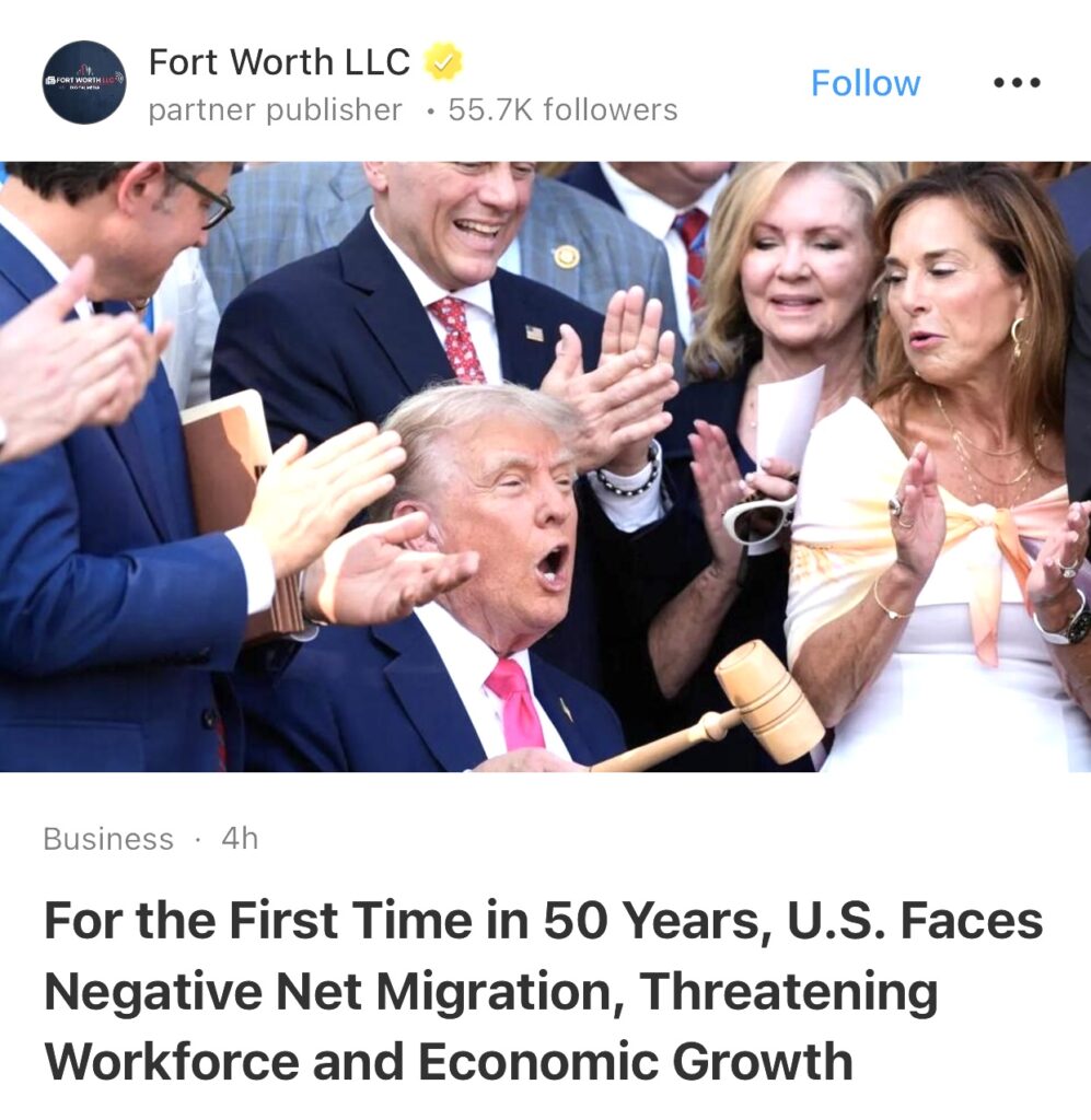 9。据Fort Worth LLC报道,美国50年来首次面临净移民负增长,威胁劳动力和经济增长。