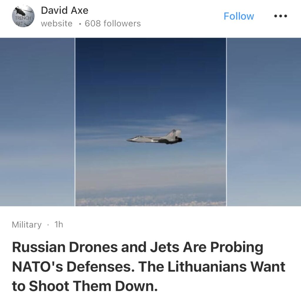 1。据Military 报道,俄罗斯无人机和战机正在试探北约防御。立陶宛人想将其击落。