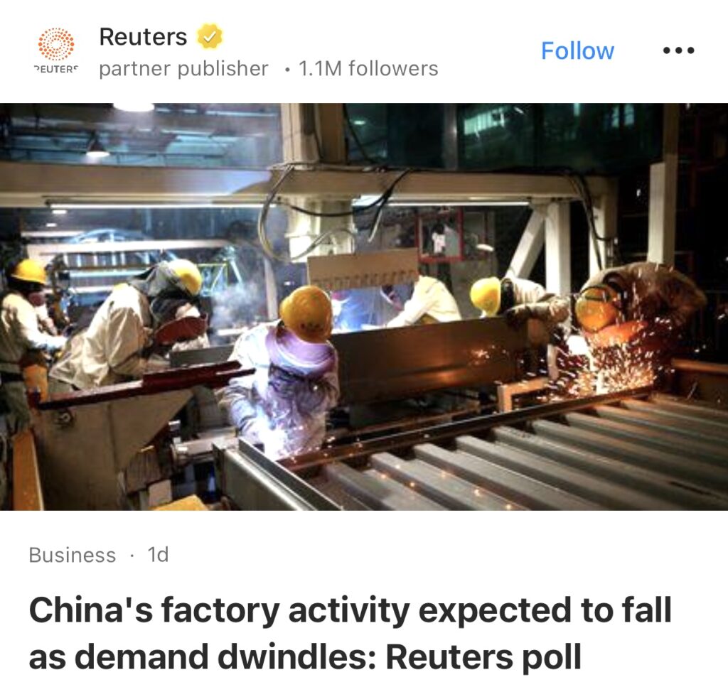 8。北京(路透社)——中国10月份工厂活动可能连续第七个月萎缩,这凸显了进一步刺激措施以提振国内需求的必要性,因为生产商努力将商品销往国外,只是把国内的价格战压力转移到了国外。