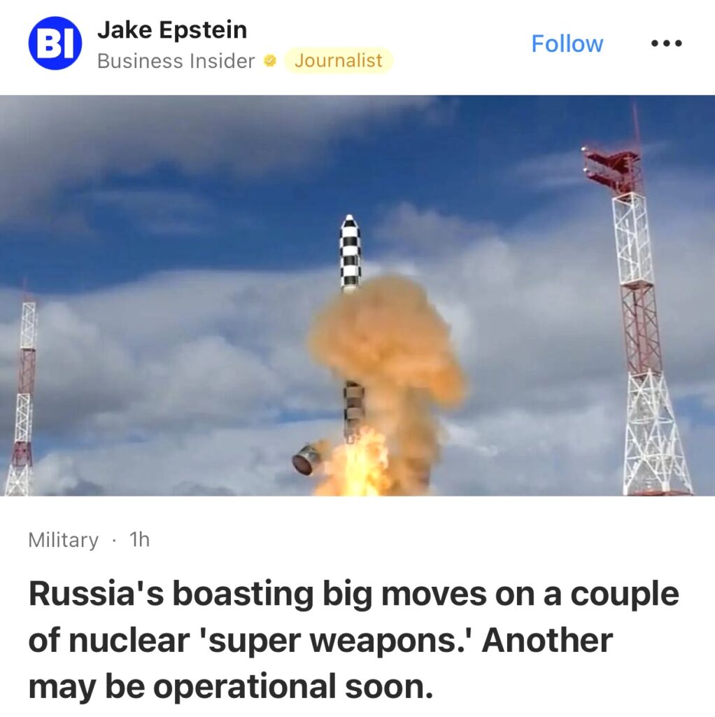 1。据Business Insider报道,俄罗斯在几款核“超级武器”的研发上取得了重大进展。其中一款可能很快就能投入使用。
