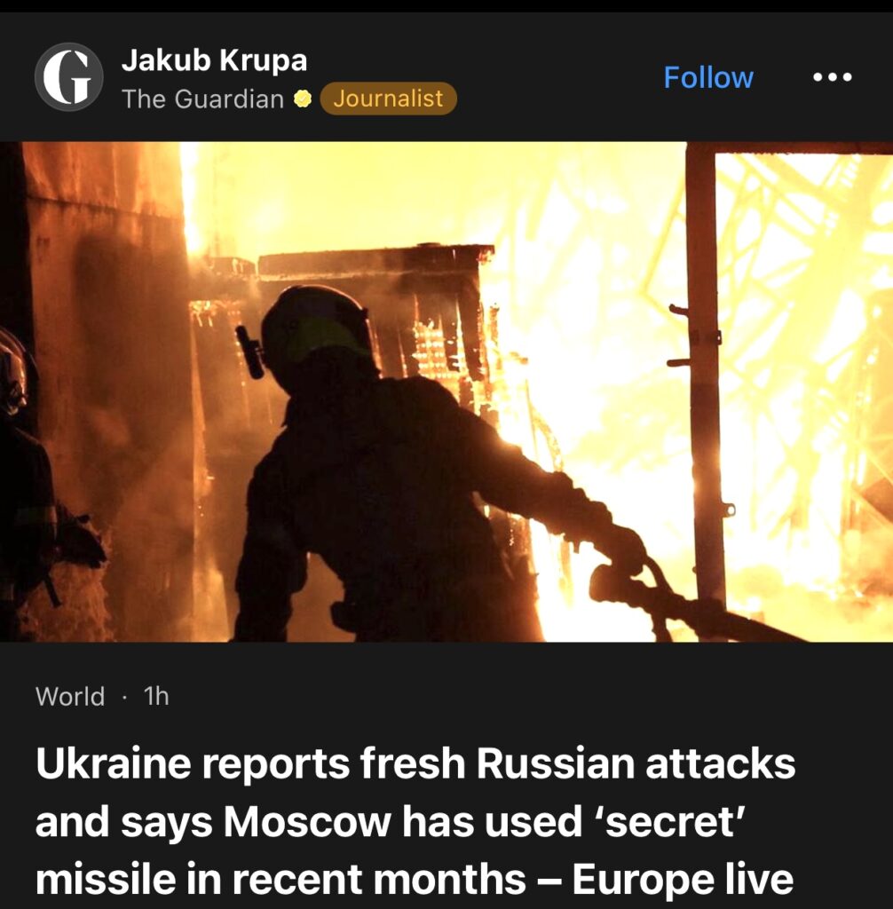 15。据The Guardian报道,乌克兰报告称俄罗斯再次发动袭击,并表示莫斯科近几个月来使用了“秘密”导弹。