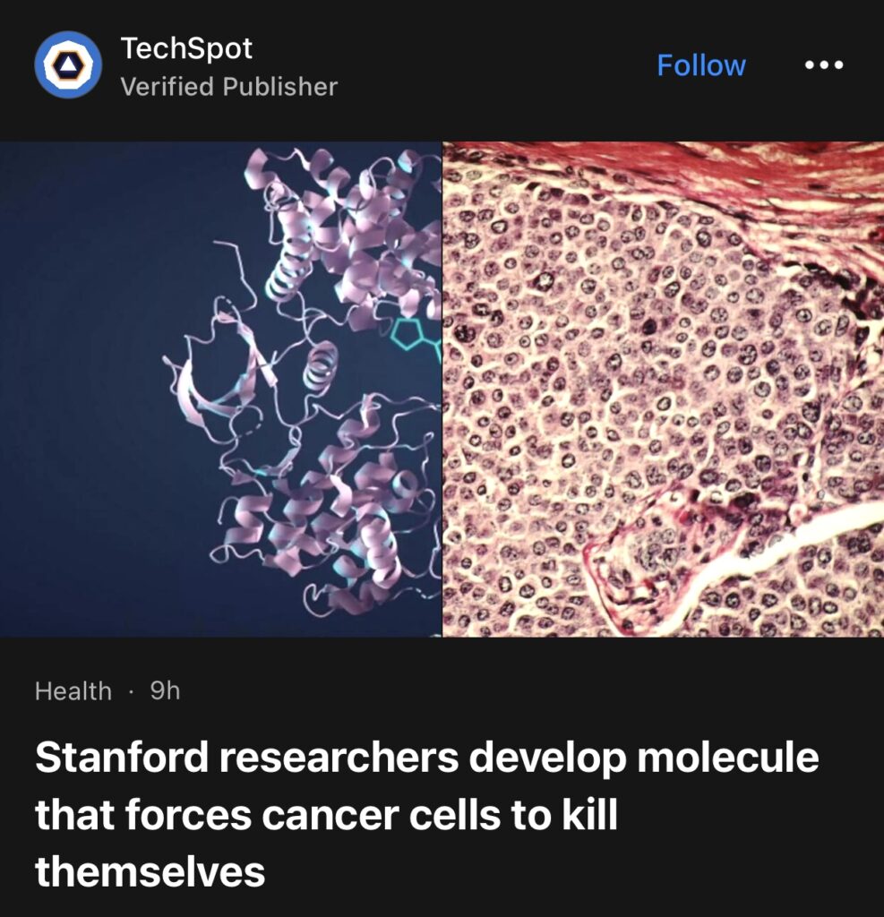 1。据Techspot 报道,斯坦福大学研究人员开发出迫使癌细胞自杀的分子。有前途的研究使癌基因对抗癌症的自然生存机制。