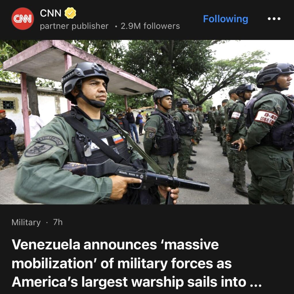 14。据CNN报道,委内瑞拉宣布“大规模动员”军事力量,与此同时,美国最大的军舰驶入该地区。