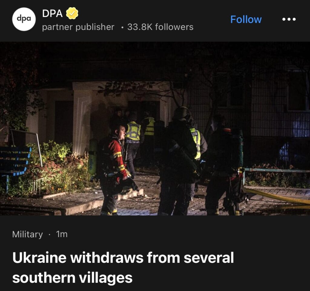 6。据DPA报道,乌克兰从南部几个村庄撤军。