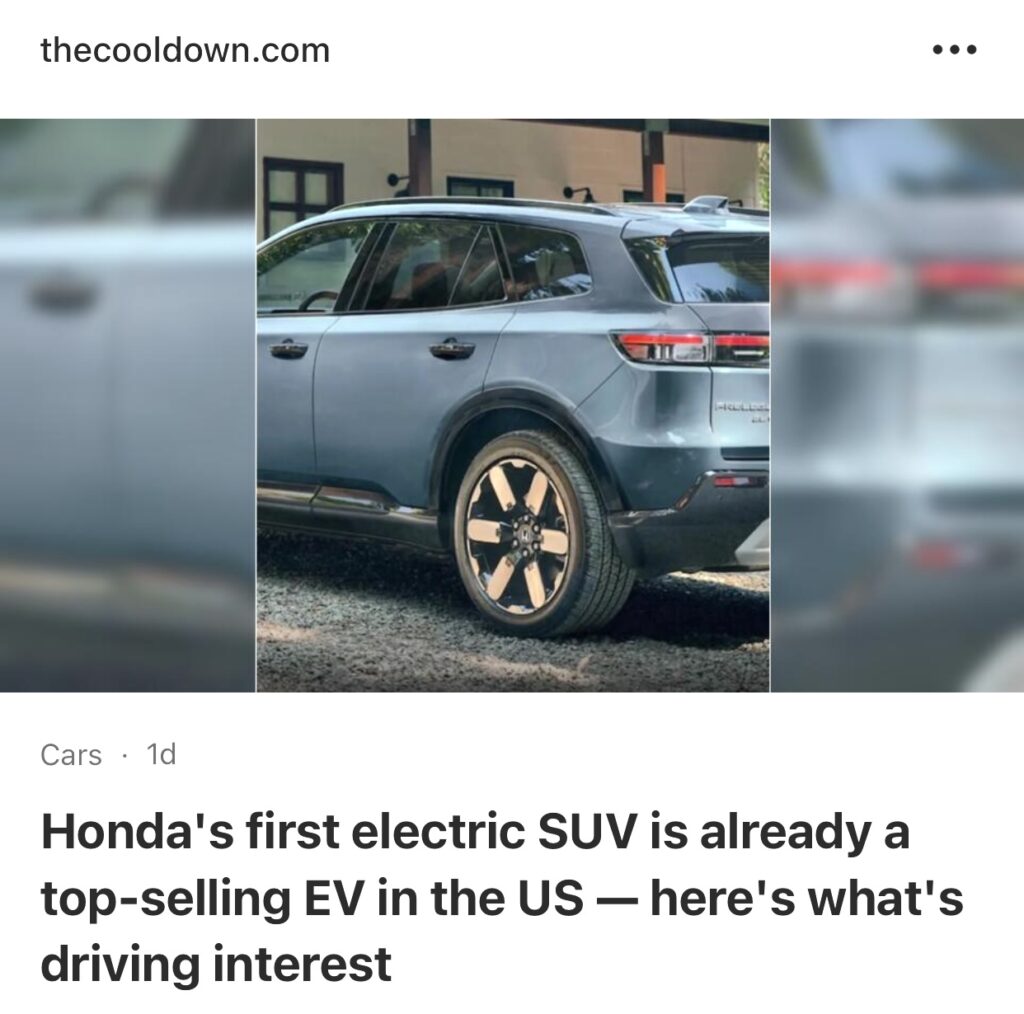 15。据TheCoolDown 报道,本田的首款电动 SUV 已经成为美国最畅销的电动汽车。