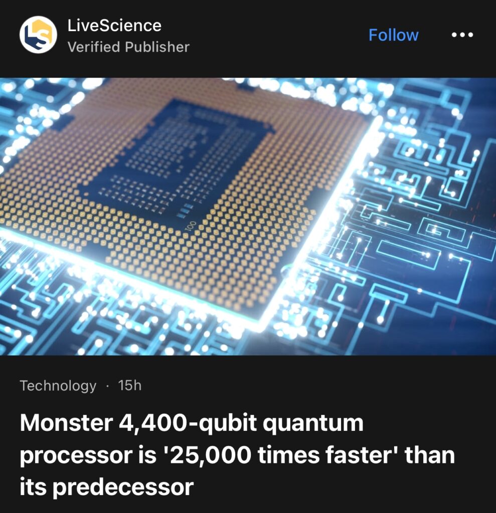 1。据LiveScience 报道,Monster 4,400 量子位量子处理器,比其前身“快 25,000 倍”。