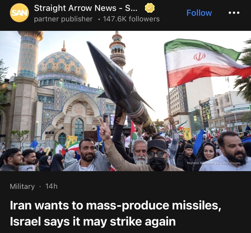 9。据Straight Arrow News报道,伊朗希望大规模生产导弹,以色列称可能再次发动袭击。