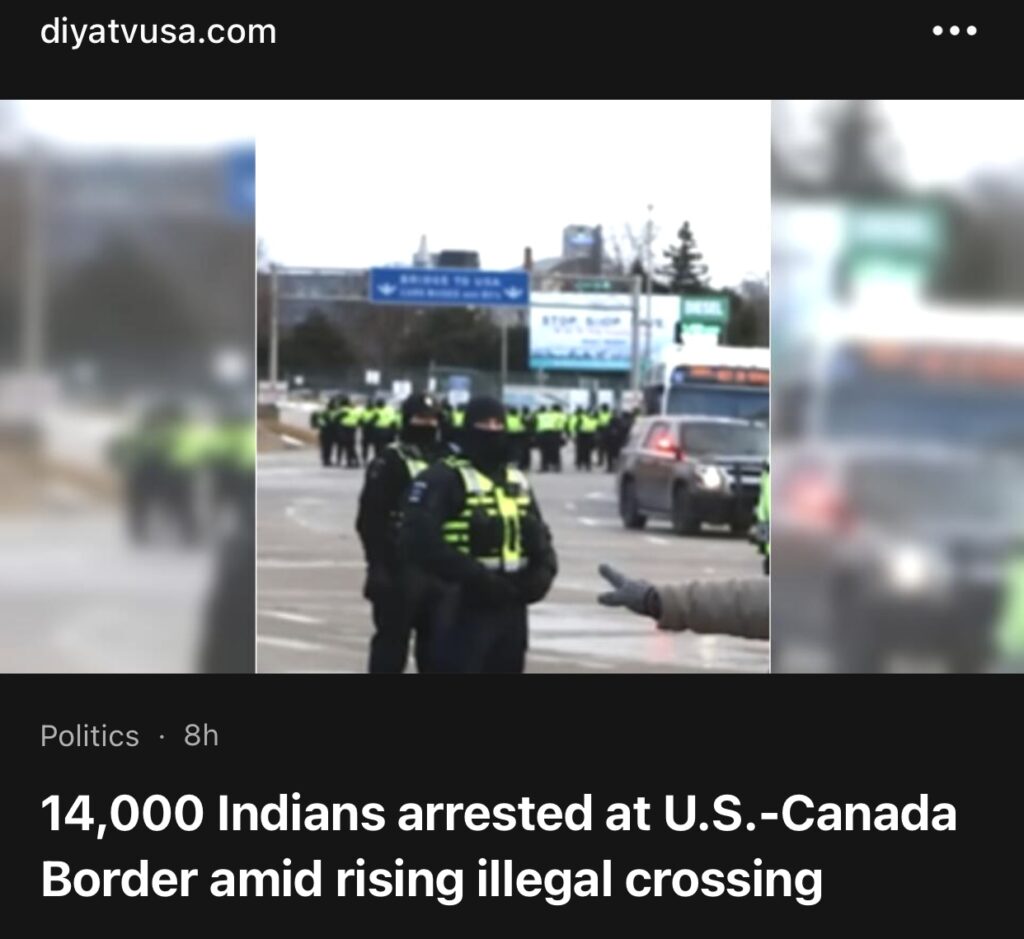 5。据Diya 报道,非法越境事件增多,14,000 名印度人在美加边境被捕。
