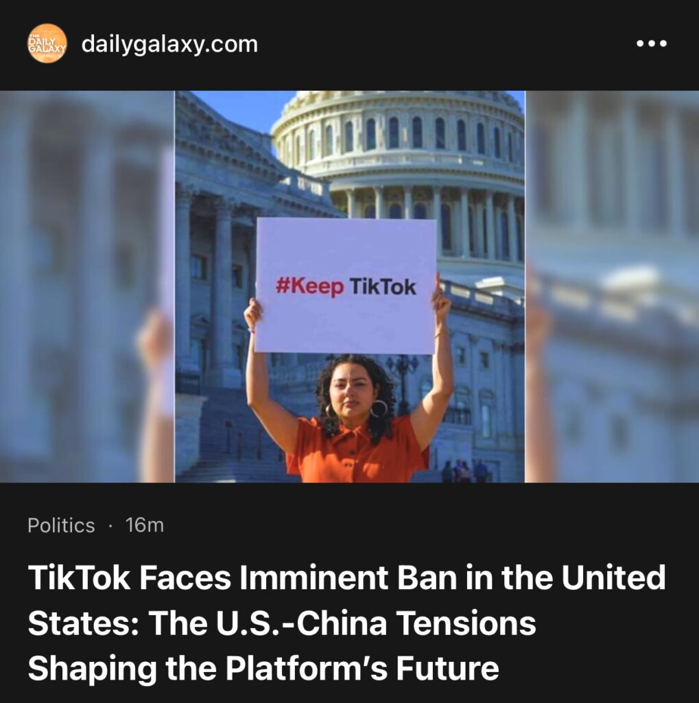 15。据DailyGalaxy 报道,TikTok 在美国面临迫在眉睫的禁令:美中紧张局势将塑造该平台的未来。