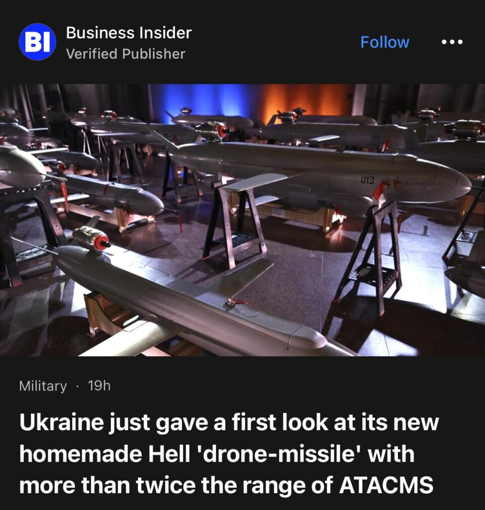 4。据Business Insider报道,乌克兰刚刚首次展示了其新型自制地狱“无人机导弹”,其射程是 ATACMS 的两倍多。