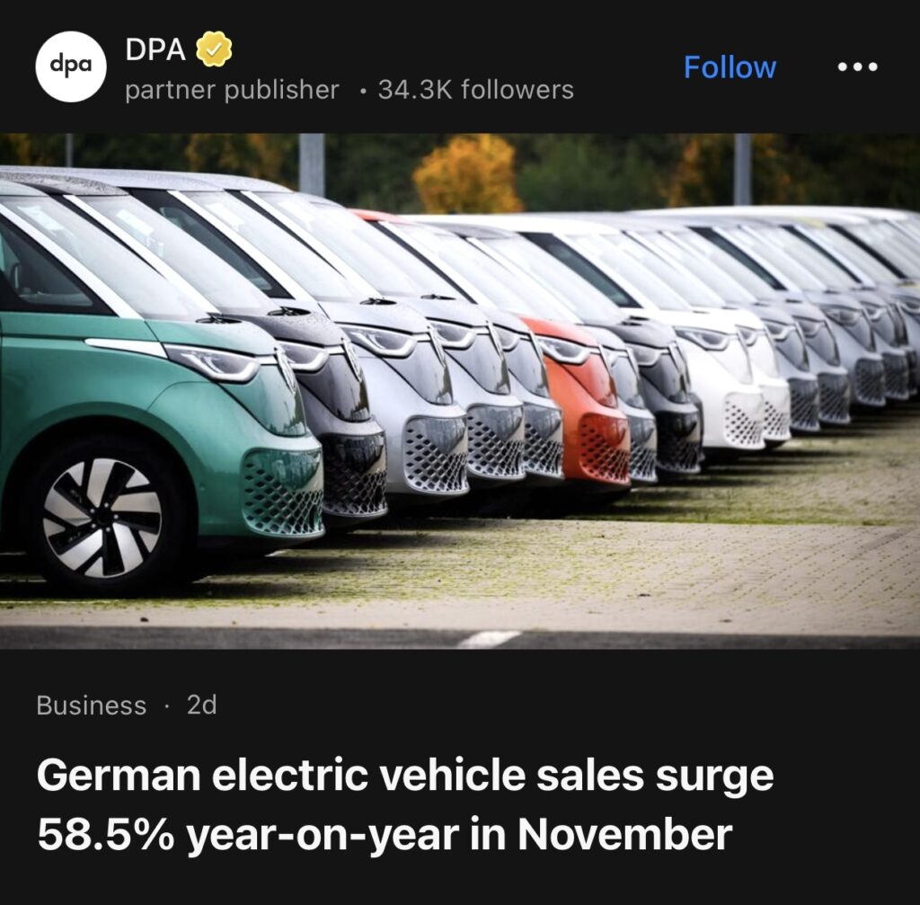 10。据DPA报道,德国11月份电动汽车销量同比增长58.5%。