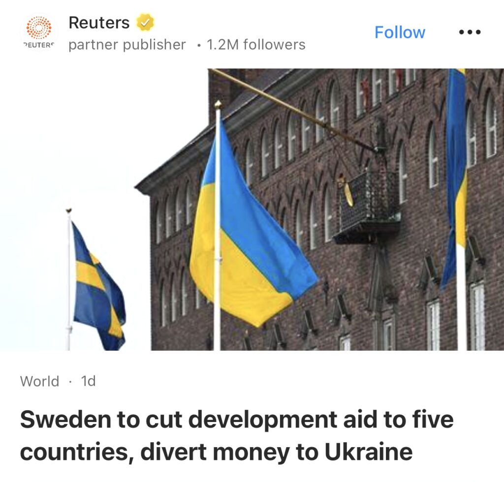4。斯德哥尔摩,12 月 5 日(路透社)——瑞典政府周五表示,瑞典将在未来几年逐步停止对五个国家的援助,并将这笔钱用于加大对乌克兰的支持。