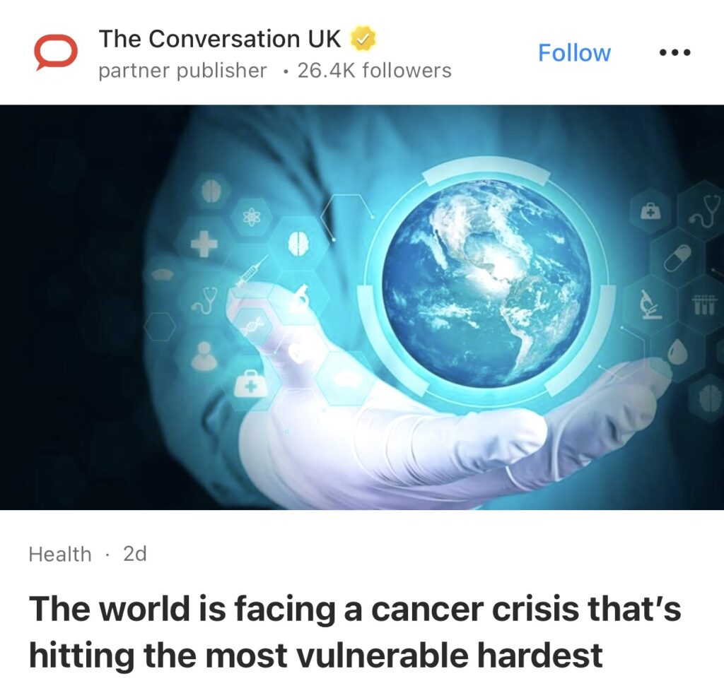 12。据The Conversation UK报道,世界正面临一场癌症危机,这场危机对最脆弱的群体打击最大。