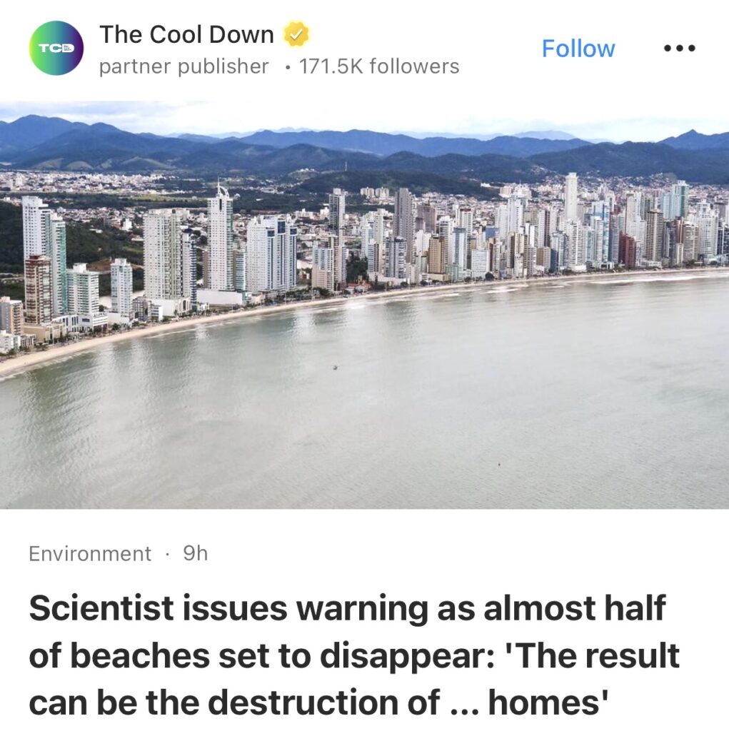 9。据The Cool Down报道,科学家发出警告:近一半海滩或将消失:“其后果可能是家园被毁”。