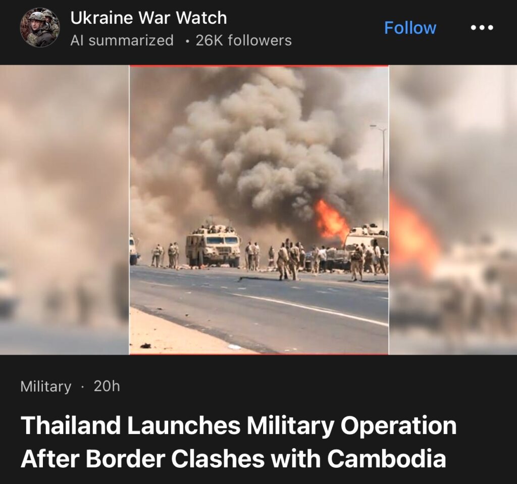 8。据Ukraine War Watch报道,泰国在与柬埔寨发生边境冲突后发起军事行动。
