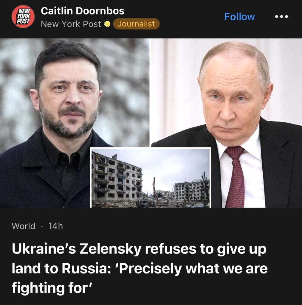 7。据New York Post报道,乌克兰总统泽连斯基拒绝向俄罗斯割让土地:“这正是我们为之奋斗的目标”。