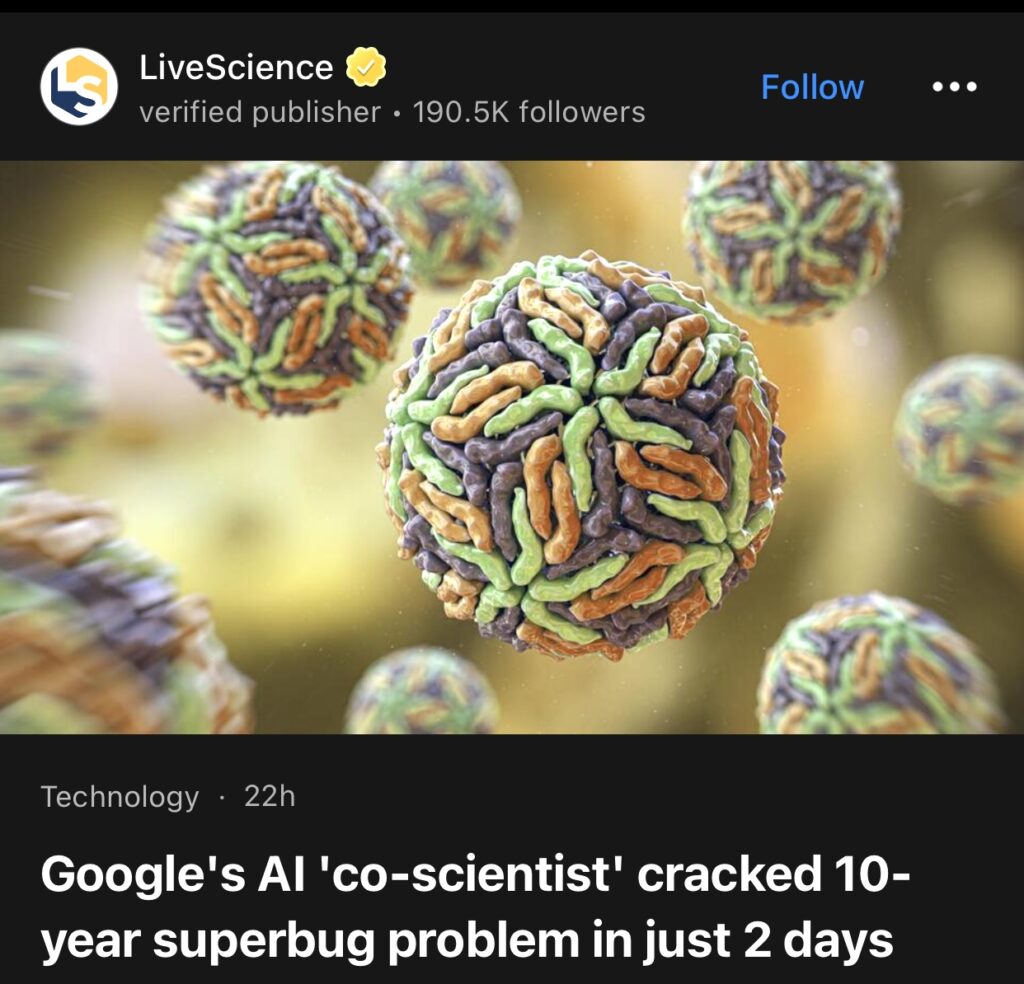 1。据LiveScience报道,谷歌的 AI“联合科学家”仅用两天时间就破解了困扰 10 年的超级细菌难题。伦敦帝国理工学院的 José Penadés 和他的同事花了 10 年时间研究某些超级细菌如何获得抗生素耐药性——抗生素耐药性的威胁日益严重,每年夺走数百万人的生命。
