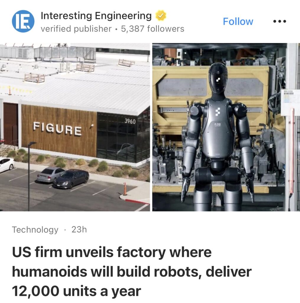 9。据Interesting Engineering报道,美国公司开设工厂,人形机器人将在那里制造机器人,每年交付 12,000 台。总部位于加州的 Figure 宣布正在开发一个新的大批量BotQ 机器人制造工厂。新工厂由 Figure 内部开发,专门用于生产人形机器人。