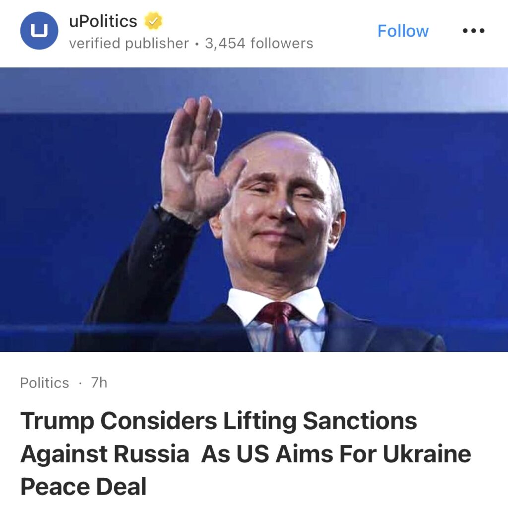 7。据uPolitics报道,一位美国官员和另一位知情人士向路透社透露,据报道,在美国总统唐纳德·特朗普寻求恢复与俄罗斯总统弗拉基米尔·普京的关系并停止乌克兰战争之际,美国正准备解除对俄罗斯的制裁。