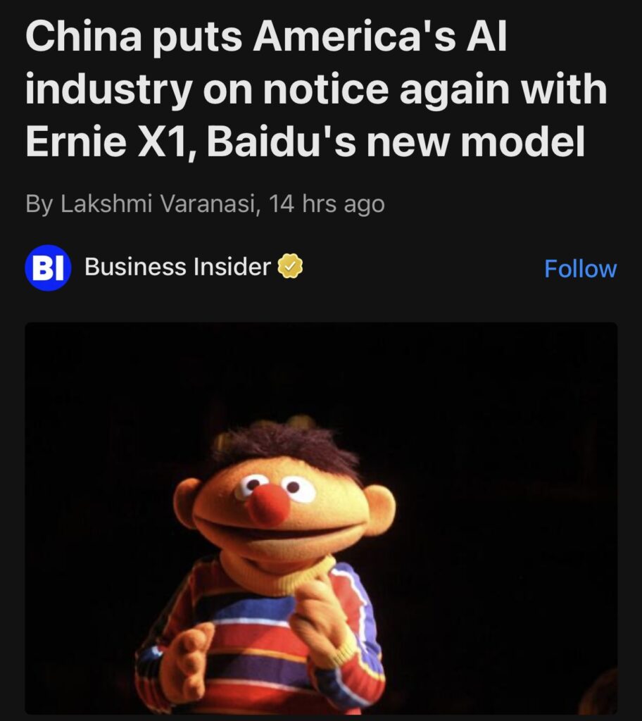 4。据Business Insider报道,中国科技巨头百度发布了新的人工智能模型 Ernie X1 和 Ernie 4.5。该公司表示,这些模型在性价比方面可与 OpenAI 和DeepSeek 相媲美。中国越来越多地接受开源模型。