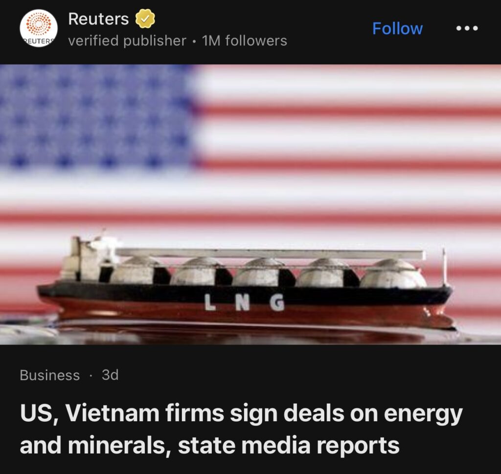 3。河内(路透社)——据越南国家媒体和一家公司周五报道,在越南贸易部长访问美国期间,越南和美国公司签署了一系列能源和矿产协议。