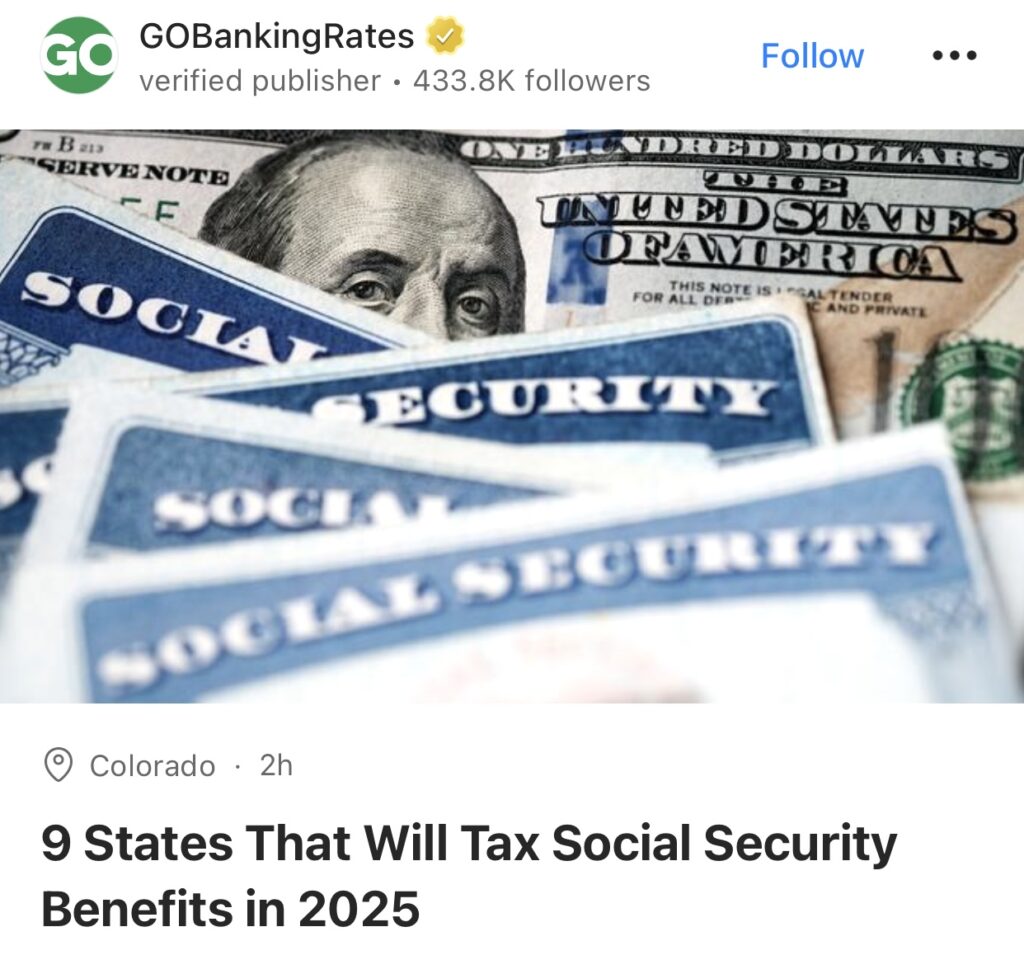 3。据GOBankingRates 报道,美国9 个州将于 2025年对社会保障福利征税,其为Colorado,Connecticut (康州),Minnesota,Montana,New Mexico,Rhode Island(长岛),Utah,Vermont,West Virginia。