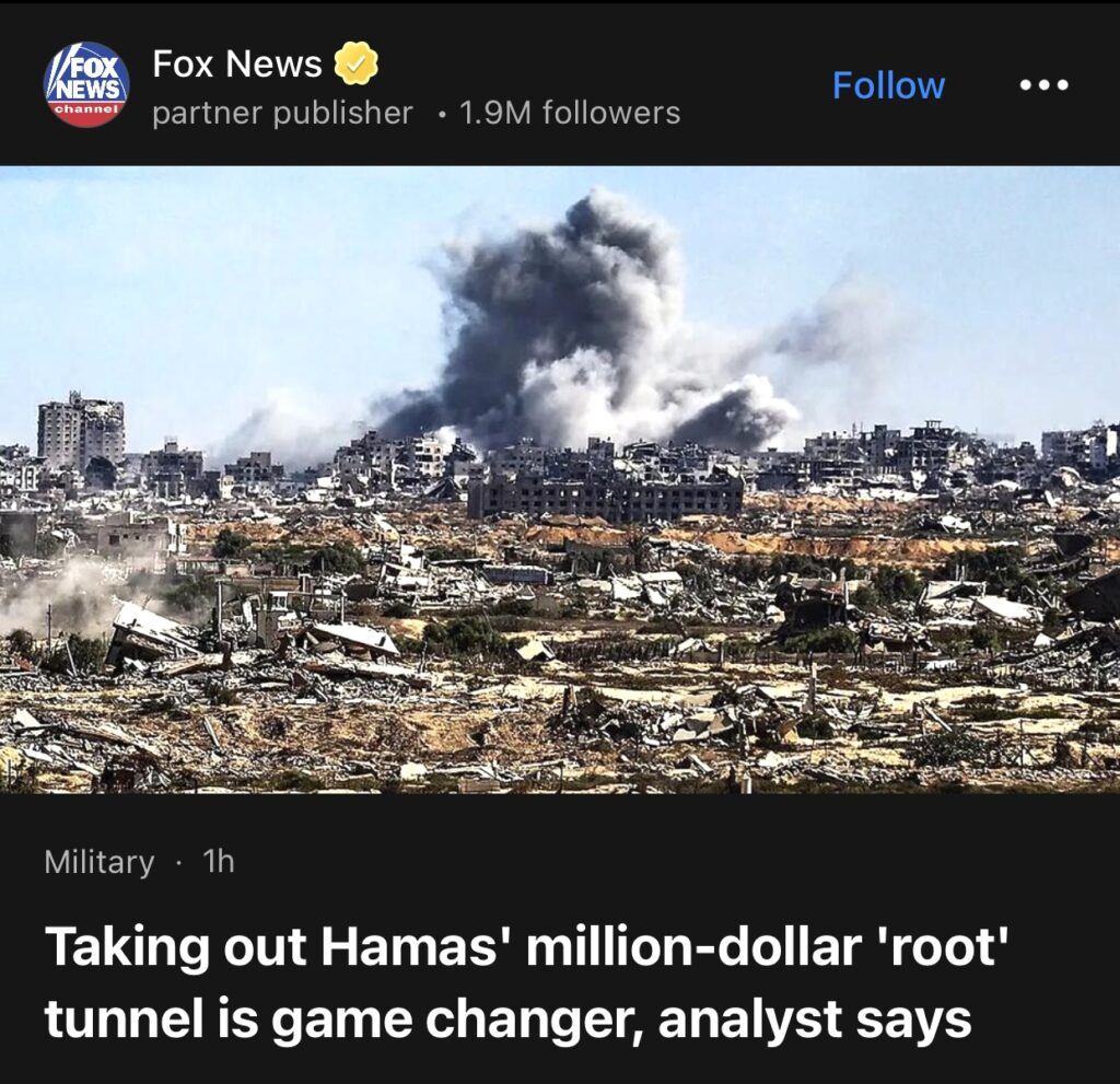 10。据Fox News报道,分析人士称,摧毁哈马斯价值百万美元的“根”式隧道将改变战局。